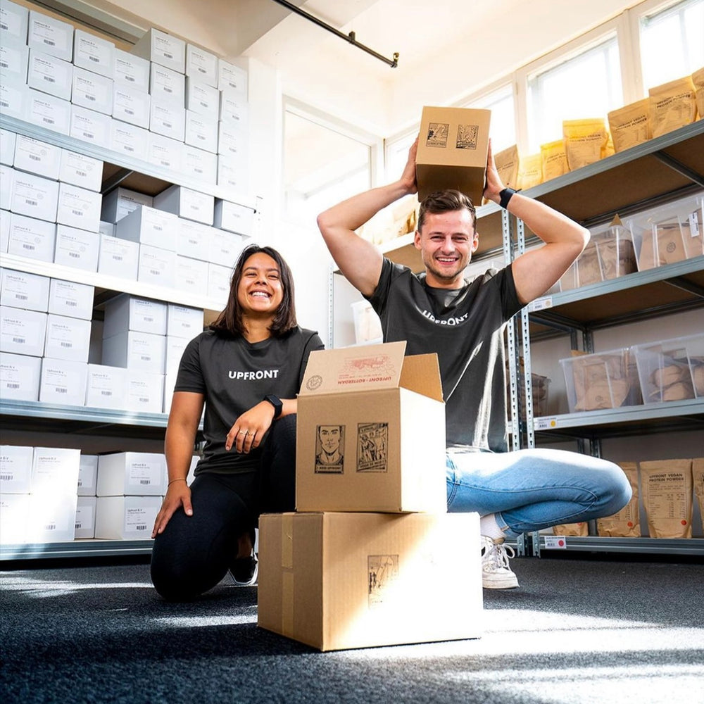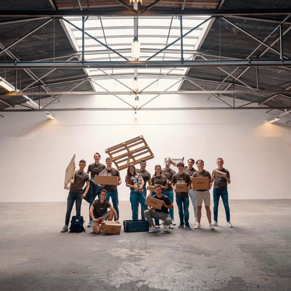 We zien hoe belangrijk Upfront’s groei is voor de gezondheid, dus we zetten ambitieuze doelen en verhuizen naar een hal van 600m² omdat we meer dan 20 producten verkopen en 100+ orders per dag krijgen.