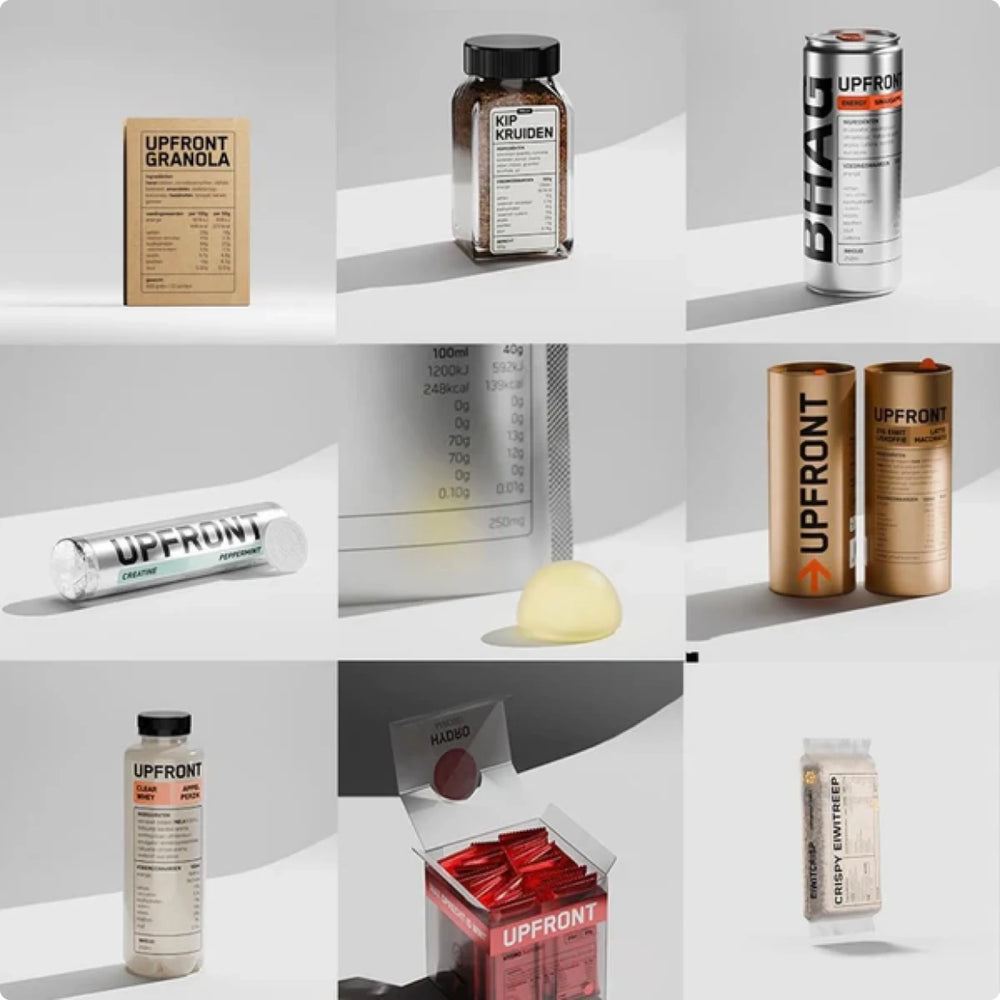 We drukken onze ingrediënten en voedingswaarden groot op de voorkant van onze verpakking. Zo blijft Upfront scherp, zo blijf jij scherp.